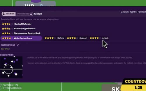 UN NUOVO RUOLO PER IL DIFENSORE CENTRALE - È la grande novità tattica dell'edizione. Chi gioca a FM lo sa: ogni singolo giocatore può essere istruito sul come muoversi. L'attaccante non è solo attaccante, ma può essere attaccante che pressa, seconda punta, boa, uomo d'area e tante altre opzioni. Così come per ogni ruolo. La novità si chiama "wide centre-back", il centrale largo per la difesa a tre.