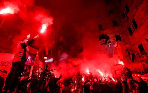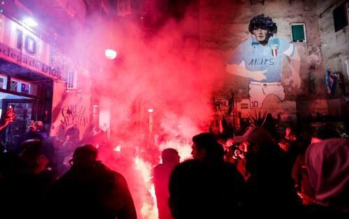 Napoli, fiaccolata per Maradona ai Quartieri Spagnoli. FOTO