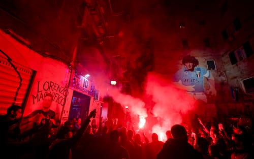Tantissimi tifosi si sono riuniti ai Quartieri Spagnoli per una fiaccolata in ricordo di Diego Armando Maradona, scomparso il 25 novembre di un anno fa. Un gioco di luci bellissimo per omaggiare il più grande calciatore della storia del Napoli. Ecco le immagini più belle
