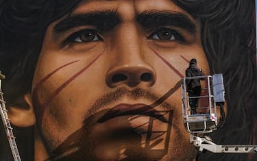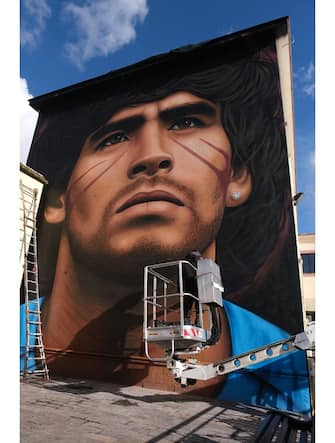 "Il tuo volto dipinto a testa ALTA", scrive l'artista sui suoi profili social. "Napoli ti piange perché abbiamo perso il numero 10, nonché numero 1 del nostro cuore. Simbolo di vittoria eterna".