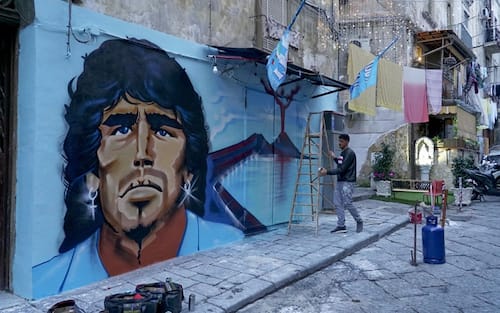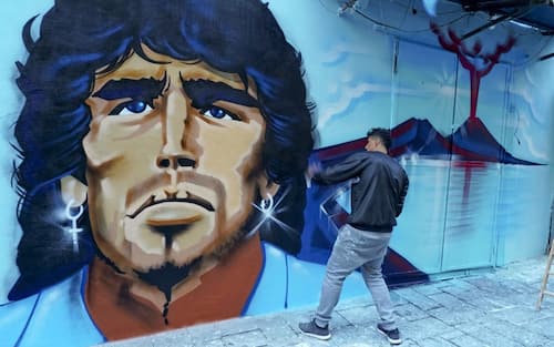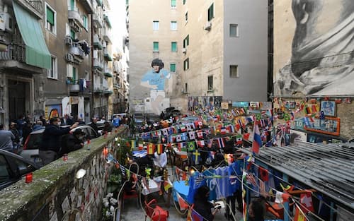 PIAZZETTA "MARADONA". Dalla morte di Diego, il murales di via Emanuele de Deo - disegnato per lo scudetto del 1990 e restaurato nel 2016 - è diventato sempre di più meta di "pellegrinaggio" di tifosi o semplici turisti, che rendono ogni giorno omaggio in centinaia al campione argentino.