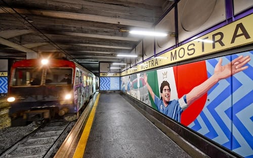 METRO "MARADONA". Il 5 dicembre dell'anno scorso la stazione della Cumana "Mostra-Stadio Maradona" è stata intitolata a Diego, ridisegnata con una serie di murales che raccontano il Pibe de Oro e la storia del club azzurro dalla sua nascita ai giorni nostri.