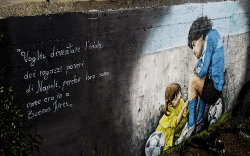 DIEGO E DALMA. "Voglio diventare l'idolo dei ragazzi poveri di Napoli, perché loro sono come ero io a Buenos Aires". La scritta campeggia sul murales creato pochi giorni dopo la morte di Maradona da Mario Casti sul muro esterno del centro sportivo Paradiso, nel quartiere Soccavo, "culla" degli azzurri campioni d'Italia. Quella bambina è Dalma, una delle due figlie femmine di Diego.