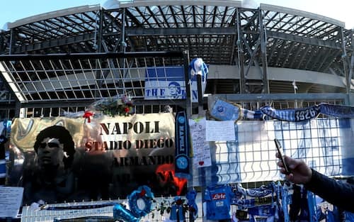STADIO "MARADONA". Il 26 novembre del 2020, all'indomani della scomparsa di Diego Armando Maradona, l'amministrazione comunale di Napoli annuncia - a "furor di popolo" - di aver intrapreso l'iter per intitolare l'impianto all'ex capitano azzurro. Otto giorni dopo, il 4 dicembre, l'approvazione della delibera di giunta per il cambio di denominazione, accolta dal prefetto. Il San Paolo diventa così "Stadio Maradona".