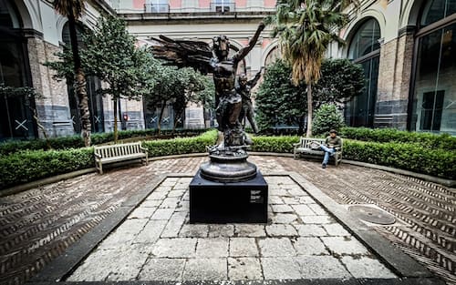 "IL SOGNO DELL'EROE". Una terza statua fa invece già bella mostra dal 24 novembre nel Giardino delle Camelie del Museo archeologico nazionale di Napoli. L'opera - realizzata da Christian Leporino - si intitola "Il sogno dell'eroe" e fa parte della collezione permanente del MANN. È alta circa tre metri, modellata in argilla, gesso e cera, fusa in bronzo. Si tratta di una vittoria alata, che riecheggia un'antica Nike ed è sostenuta ed abbracciata dal Diego bambino, che sognava di diventare immortale, come un Dio del calcio.