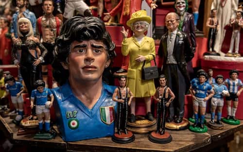 DIEGO NEL PRESEPE. Immancabile la nuova "statuetta" di Maradona nella via dei presepi, San Gregorio Armeno, realizzata da Gennaro Di Virgilio in occasione del primo anniversario dalla scomparsa del campione.