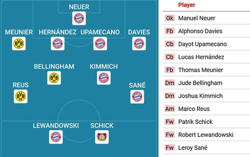Patrick Schick è "l'intruso" in una formazione che prevede un blocco di giocatori del Bayern Monaco (7) e il contributo di qualche elemento del Borussia Dortmund... ma non Haaland.