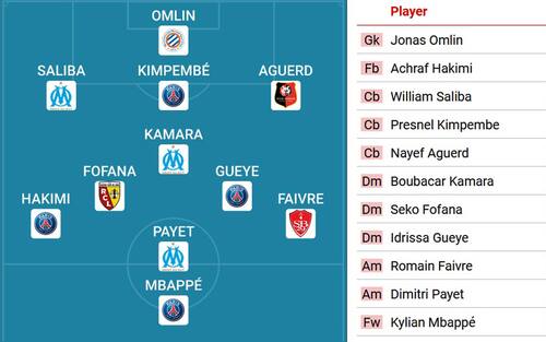 Psg-Olympique Marsiglia 4-3: chi si aspettava un dominio da parte dei parigini rimarrà deluso. Ben 6 i club diversi rappresentati, per il campionato francese che si schiera con un 3-5-1-1.