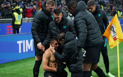 INZAGHI DA RECORD - Simone Inzaghi è diventato l'allenatore che ha battuto in più occasioni la Juventus in una finale dal 1929/30: per l'attuale allenatore dell'Inter tutte le tre vittorie sono arrivate in Supercoppa. L'abbraccio tra l'allenatore e il protagonista della partita, Sanchez: il gol del cileno allo scadere dei supplementari ha regalato a Inzaghi il primo titolo sulla panchina nerazzurra