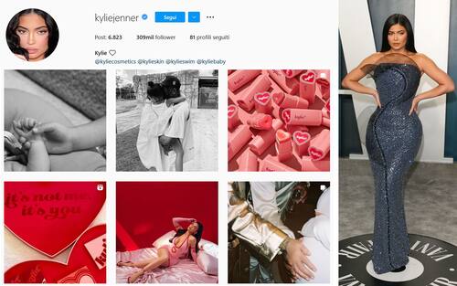 2) KYLIE JENNER (imprenditrice, conduttrice tv): 309 milioni di followers