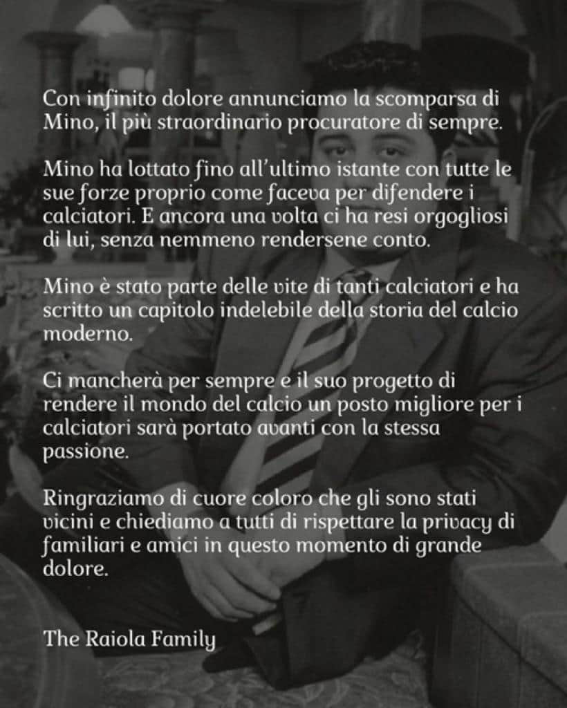 luttoIl noto procuratore aveva 54 anni. Ricoverato a gennaio, negli ultimi mesi le sue condizioni si erano aggravate. Era l'agente di campioni come Ibrahimovic, Donnarumma, Pogba e Balotelli. L'annuncio è stato dato dalla famiglia
