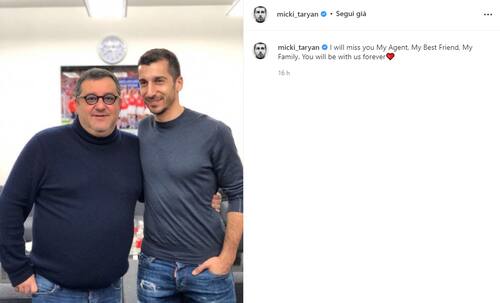 Henrikh Mkhitaryan, centrocapista della Roma anche lui seguito da Raiola, ha postato una foto di loro due con la dedica: "Mi macherai, Mio Agente, Mio Migiore Amico, la Mia Famiglia. Sarai per sempre con noi"