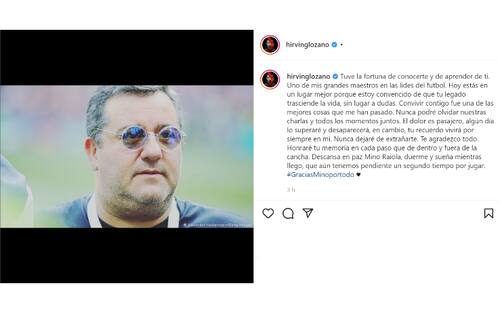 Lozano scrive: "Ho avuto la fortuna di conoscerti e di imparare da te. Uno dei miei grandi maestri. Oggi vai in un posto migliore perché sono convinto che la tua eredità trascende la vita. Vivere con te è stata una delle cose migliori che mi sia mai capitata. Non potrò mai dimenticare tutti i momenti passati insieme. Il dolore è temporaneo, il tuo ricordo vivrà per sempre in me. Onorerò la tua memoria in ogni passo che farò dentro e fuori dal campo. Riposa in pace Mino, dormi e sogna mentre arrivo, abbiamo ancora un secondo tempo da giocare"