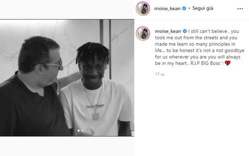 Moise Kean, un altro dei suoi assistiti, ha affidato al proprio profilo Instagram un pensiero a Mino Raiola: "Ancora non riesco a crederci. Mi hai tolto dalle strade e insegnato così tante cose della vita... Resterai per sempre nel mio cuore"