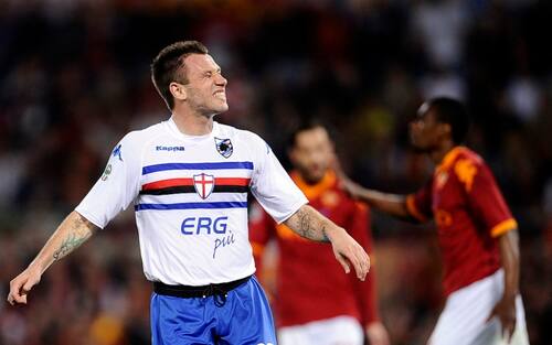 - Ma il suo 2010 resta da ricordare: insieme al gemello Pazzini, trascina la Sampdoria a uno storico quarto posto che vale alla squadra di Delneri l’accesso ai preliminari di Champions. A Marassi è festa grande, e negli spogliatoi Antonio si scatena con il presidente Garrone, ballando sulle note di “Non succederà più” di Claudia Mori e Celentano