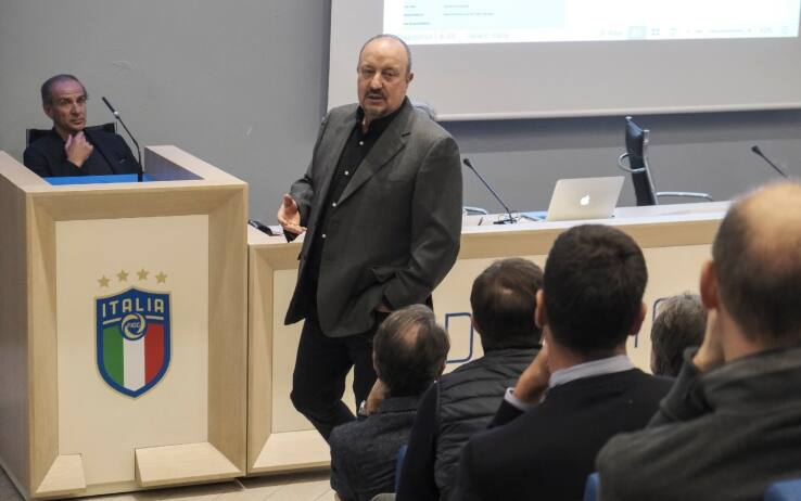 Dopo la domenica sera passata a Sky Calcio Club, un lunedì trascorso a Coverciano per Rafael Benitez. La Scuola Allenatori di Coverciano ha accolto lo spagnolo, che ha tenuto una lezione sull'allenatore-manager in un'aula magna riempita completamente dagli allievi dei corsi per Direttore Sportivo e per allenatore Uefa Pro e Uefa A. Una docenza che ha chiamato a raccolta anche personalità del calcio che hanno voluto sentire in prima persona le parole dell'ex tecnico - tra le altre - di Real Madrid, Valencia, Liverpool, Inter e Napoli: dall'allenatore del Parma, ed ex 'vice storico' di Benitez, Fabio Pecchia, all'ex ds di Napoli, Verona e Bologna Riccardo Bigon all'allenatore Gabriele Cioffi.