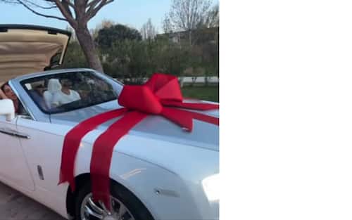 Il giocatore portoghese ha postato su Instagram una foto del mega regalo ricevuto dalla compagna: una Rolls Royce cabrio dal valore di più di 300 mila euro. E Georgina ha immortalato la consegna in un video...