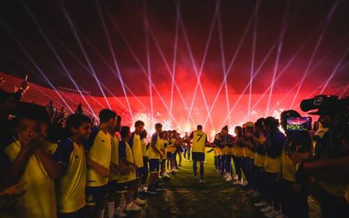 - Poco dopo le 18 italiane, Cristiano Ronaldo ha fatto il suo ingresso in campo al King Saud University Stadium tra giochi di luce e fuochi d'artificio