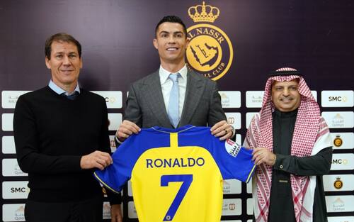 - Cristiano Ronaldo è stato presentato alla stampa in compagnia dell'allenatore dell'Al-Nassr, Rudi Garcia, e il presidente del club, Musalli Al Muammar
