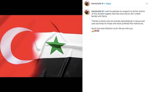 - "Desidero esprimere il mio sostegno a tutte le vittime di questa terribile tragedia avvenuta al confine turco con la Siria. Grazie a chi sta partecipando attivamente alle attività di soccorso e cura per chi ha questa disgrazia"