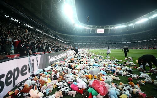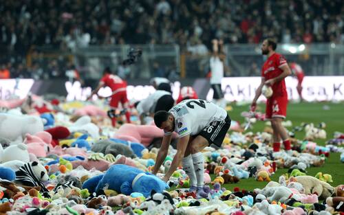 La gara tra Besiktas e Antalyaspor è stata interrotta momentaneamente al 5' di gioco per il lancio di migliaia di peluche dagli spalti. Tutti i giocattoli sono destinati ai bambini vittime del terremoto che ha sconvolto Turchia e Siria