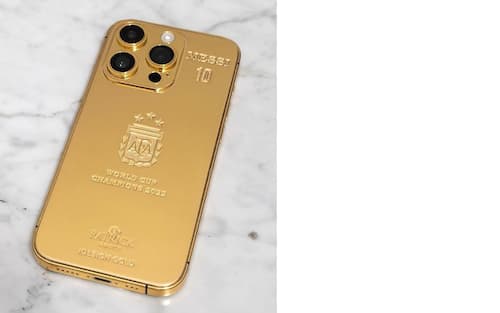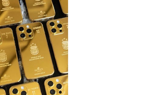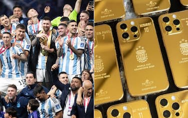 - Si tratta di un iPhone 14 in oro, realizzato appositamente in 35 elementi, uno per ciascuno dei 26 giocatori più i membri dello staff. Ovviamente personalizzati, perché sulla cover d’oro sono incisi lo stemma dell’Argentina (con le tre stelle che rappresentano il numero di Mondiali vinti), la scritta "World Cup Champions 2022", il nome di ogni compagno e il suo numero di maglia