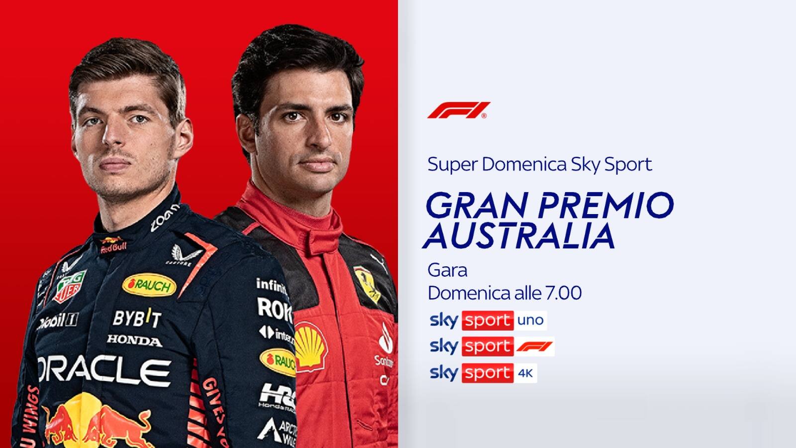 - ore 7: Formula 1, GP Australia (in diretta su Sky Sport F1, Sky Sport Uno, Sky Sport 4K e in streaming NOW)