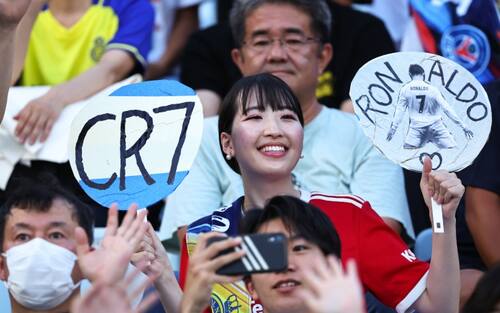 - Tantissimo entusiasmo tra il pubblico per la presenza della star portoghese. Qui, addirittura, una tifosa ha scritto il nome di "CR7" su un'insolita bandiera argentina...