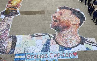 Leo Messi e la vittoria dell'Argentina al Mondiale continuano a ispirare forme d'arte: l'ultima è un mosaico realizzato dagli studenti di una scuola che hanno utilizzato 90mila tappi di bottiglia per riprodurre la sua immagine
