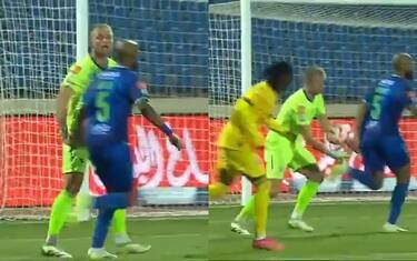 Dà un cinque al portiere ma tocca il pallone e procura il rigore agli avversari