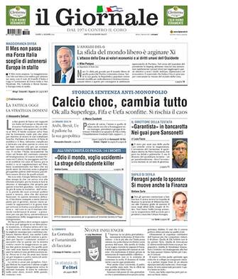 - IL GIORNALE: "CALCIO CHOC, CAMBIA TUTTO"