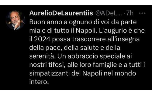 - Napoli: il tweet di auguri del presidente Aurelio De Laurentiis.