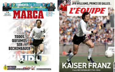 - Il giornale francese, come spesso accade per i grandi campioni, riserva a Beckenbauer la prima pagina con una figura intera del campione tedesco, accompagnata da una scritta molto semplice: "Kaiser Franz", insieme alla data di nascita e di morte