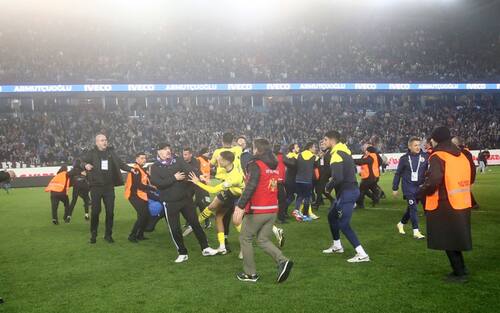 Un'altra aggressione choc durante il campionato turco. Decine di ultras del club turco del Trabzonspor hanno preso d'assalto in campo giocatori e staff del Fenerbahce dopo la sconfitta casalinga per 2-3 domenica. La squadra del Fenerbahce e gli arbitri hanno dovuto essere protetti dal personale di sicurezza e sono fuggiti negli spogliatoi per sfuggire all'assalto dei tifosi. Le immagini e la ricostruzione