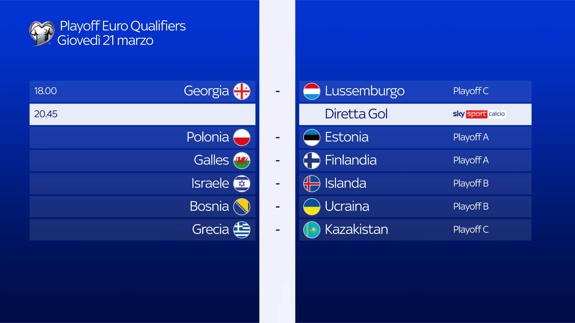 - ore 20.45: Diretta Gol, Sky Sport Calcio e in streaming su NOW