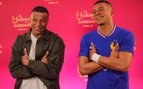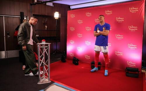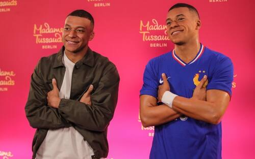 L'attaccante francese ha preso parte all'unveiling dell'ultima creazione del Madame Tussauds, con una statua di cera che lo ritrae con il kit che utilizzerà la Francia nei prossimi Europei. Mbappé è rimasto sbalordito per l'incredibile somiglianza: "Sono io, al 100%. È più Kylian di me!", ha commentato sorridendo. La statua, presentata a Parigi, presto verrà trasferita a Berlino
