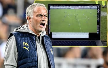 La protesta di José Mourinho: pc davanti alla telecamera per il gol annullato a Dzeko