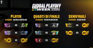 Subito dopo i play-in, il 10 maggio inizieranno ufficialmente i playoff. Anche qui, dando uno sguardo al tabellone, gli accoppiamenti nascono in base al posizionamento in classifica delle squadre. I Gear7 (che hanno chiuso al 4° posto) sfideranno la 5^, ovvero gli Zebras (in quello che sarà un rematch dell'ultima giornata). Gli Stallions di Blur (al 3° posto in classifica) se la vedranno contro i Boomers di Fedez (6° posto). Mentre gli Zeta (2° posto) attendono l'avversaria che uscirà dai play-in. In palio, un posto in semifinale. I quarti di finale si svolgeranno il 10 maggio dalle ore 18 alle 20.