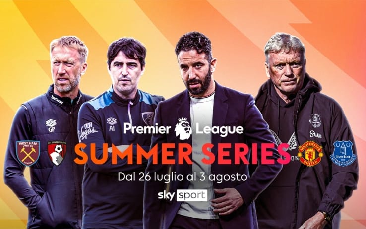 Si gioca anche negli Stati Uniti, dove si scenderà in campo per le Summer Series di Premier League, il torneo precampionato che vedrà sfidarsi Manchester United, West Ham, Everton e Bournemouth. Primi due incontri nella notte tra sabato 26 e domenica 27 luglio, con Everton-Bournemouth alle 22 (Sky Sport Arena e NOW) e Manchester United-West Ham all’1 (Sky Sport Uno, Sky Sport Calcio e NOW). Nella notte tra mercoledì 30 e giovedì 31 luglio a mezzanotte e mezza sarà il turno di West Ham-Everton (Sky Sport Calcio e NOW), alle 3.30, invece, il turno di Manchester United-Bournemouth (Sky Sport Calcio e NOW). Domenica 3 agosto, Bournemouth-West Ham alle 20 (Sky Sport Calcio e NOW) e Manchester United-Everton alle 23 (Sky Sport Uno, Sky Sport Calcio e NOW).