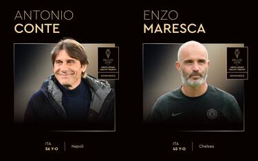 Antonio Conte ed Enzo Maresca sono in corsa per il Trofeo Cruyff, premio assegnato annualmente durante la cerimonia del Pallone d'Oro al miglior allenatore della scorsa stagione. Insieme a loro ci sono Luis Enrique, Hansi Flick e Arne Slot