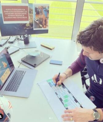 POCHETTINO AL PSG - Su uno dei monitor sulla scrivania campeggia la foto del suo cane e una frase motivazionale: "Non scusarti mai per avere standard elevati! i giocatori che vogliono davvero avere successo li alzeranno per mettersi a confronto".