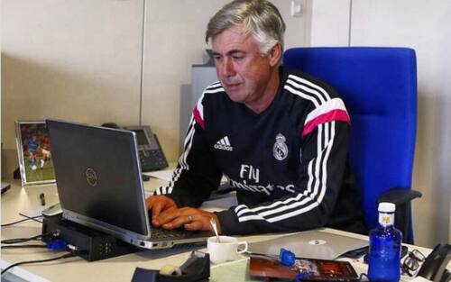 ANCELOTTI AL REAL MADRID - Ecco invece il suo ufficio coi Blancos. Immancabile il caffè, mentre a destra si nota uno dei ricordi di Ancelotti: l'esperienza da calciatore con la maglia del Milan.