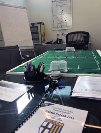 CONTE ALL'INTER - Un mix di lavagne, schemi, un subbuteo e appunti sull'avversaria del momento, in quel caso il Parma. Ecco una foto del suo vecchio ufficio.