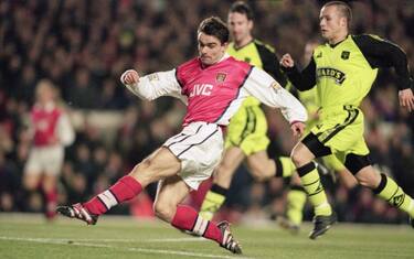 Eppure, di quella stagione dorata, il primo calciatore olandese dei “Gunners” che torna in mente non è lui, ma Dennis Bergkamp. L’immagine di Marc Overmars prende forma sempre e soltanto quando viene proiettata sullo sfondo delle immagini di altri calciatori. È un bassorilievo, scavato tra un profilo e l’altro dei suoi colleghi più illustri, quelli che in campo hanno disegnato il contesto giusto affinché le sue caratteristiche sortissero degli effetti devastanti. Overmars non era un solista, non aveva l’ego smisurato del fantasista, non era geniale, eppure aderiva all’idea di pragmatismo collettivo che van Gaal aveva conferito al suo Ajax.