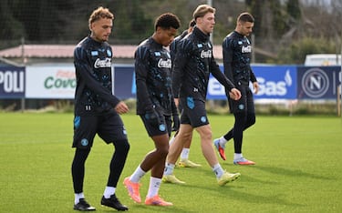 Alla vigilia della trasferta di Champions contro il Benfica a Castel Volturno allenamento...