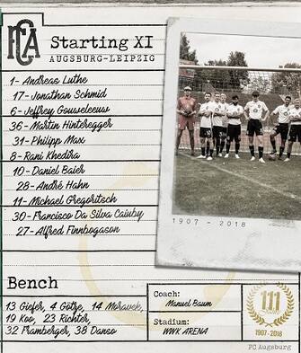 La particolare distinta dell'Augsburg svela gli 11 giocatori titolari (Ph Twitter @FCA_World)