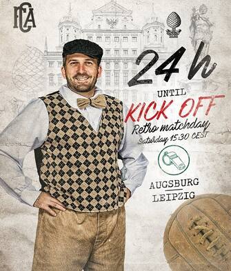 Look old style nella locandina che presenta il match di Bundesliga contro il Lipsia (Ph Twitter @FCA_World)