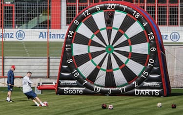 Un mega-bersaglio gonfiabile per allenare la mira. Non si tratta di un gioco all'ultima moda in tempi di quarantena, ma del particolare allenamento del Bayern Monaco. La squadra bavarese continua ad allenarsi a gruppi di 4-5 giocatori in attesa di capire quando ripartirà la Bundesliga. E per ritrovare confidenza con la porta Flick ha sottoposto i suoi ragazzi a una divertente sfida di tiro a segno declinata in versione calcistica