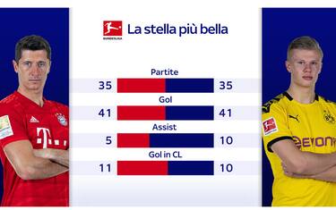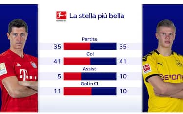 Saldo stagionale identico per i due, a differenziarli tuttavia è l’età (31 gli anni di Lewa contro i 19 di Haaland) e il bottino accumulato dal baby norvegese con due squadre (Salisburgo e Borussia Dortmund)
