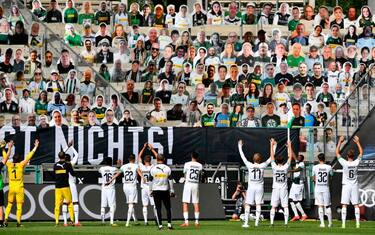 Borussia Monchengladbach, la "festa" dei giocatori con i tifosi... cartonati. FOTO